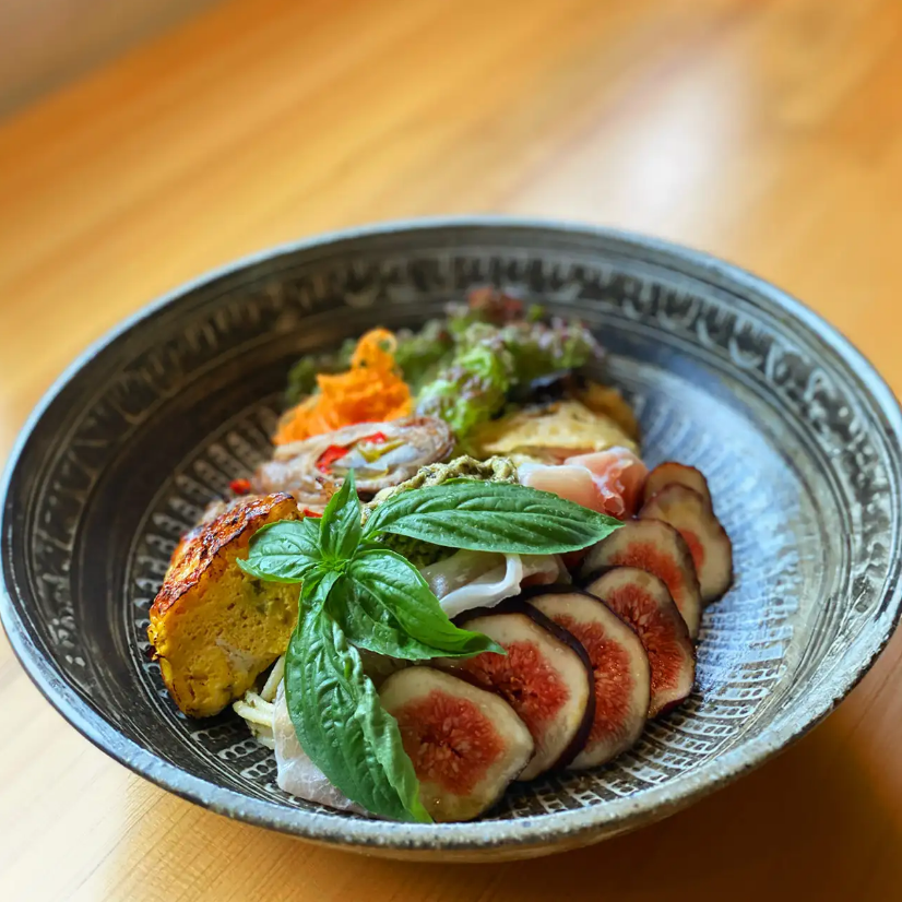 好評につき、提供期間延長いたしました。いちじくが手に入る時期だけの限定ジェノベーゼパスタです。季節の野菜やキッシュも一緒にお楽しみください。